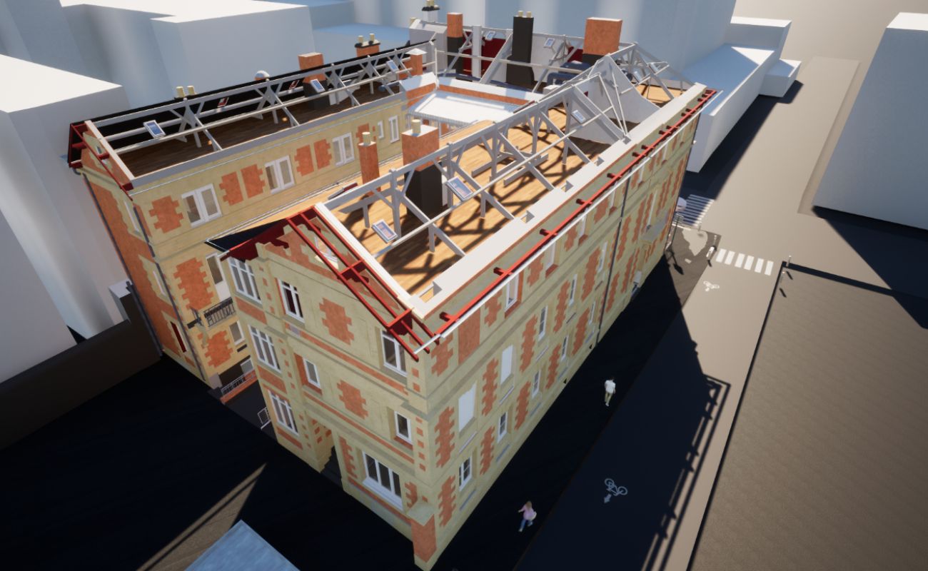 Nos Géomètres réalisent également des rendus sous forme d’immersions et de maquettes en trois dimensions, principalement sous ArchiCAD et REVIT. Ces rendus sont particulièrement utiles, car ils s’inscrivent dans une démarche BIM (Building Information Modeling).