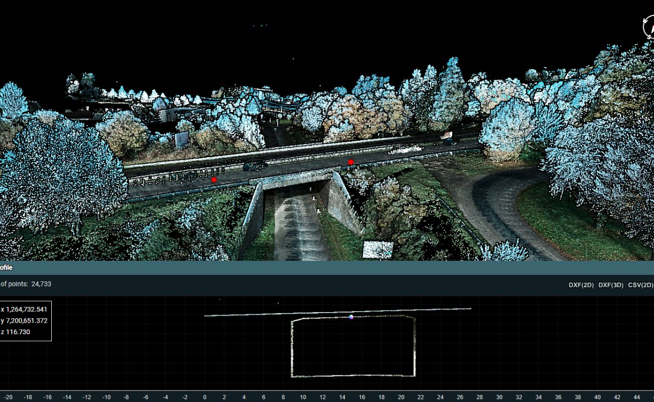 HAMEL GE livre à l’ensemble de ses clients le modèle maillé photoréaliste via son application web HWS. Ce viewer HWS, consultable sur n’importe quel poste informatique connecté à internet permet de naviguer dans le nuage, prendre des cotes (distances, surfaces, coordonnées géoréférencées) et inspecter l’ouvrage sans se rendre sur site. HWS constitue le véritable double numérique de l’ouvrage ainsi que les livrables :